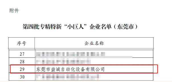Congratulations to Yicheng Automation for being awarded the title of "Small Giant" enterprise at the national level!