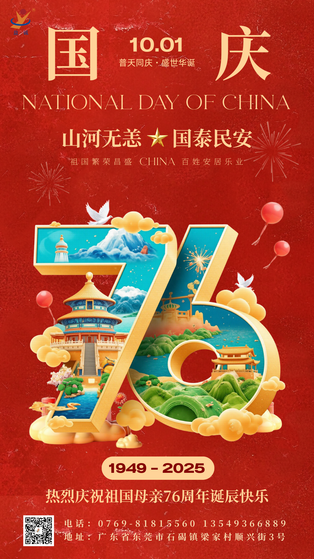 益誠(chéng)自動(dòng)化滿懷赤誠(chéng)與敬意,衷心祝愿:祖國(guó)母親,生日快樂!