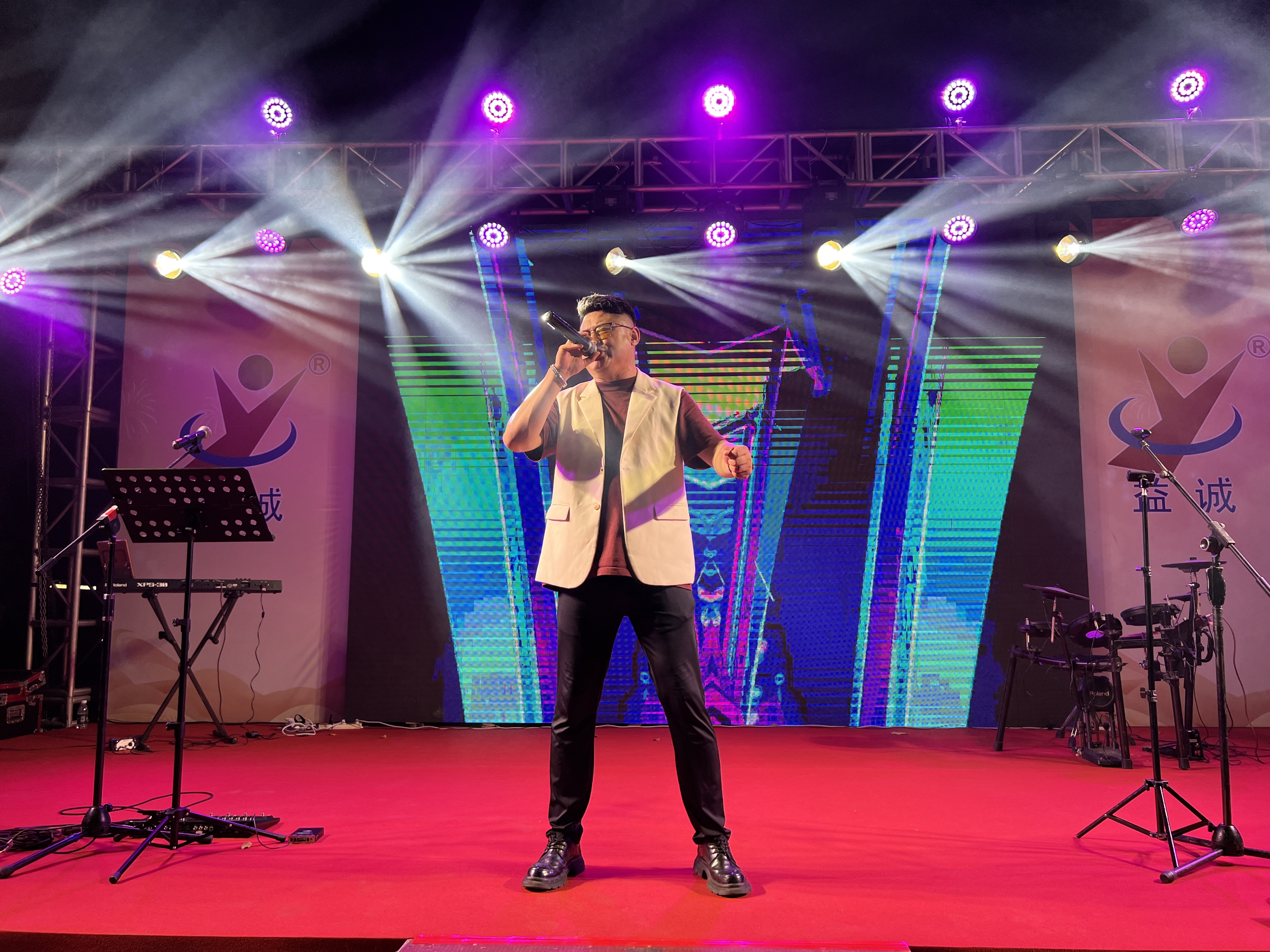 晚會由樂隊演奏激情開場,吉他、貝斯與鼓點交織,瞬間引燃全場;舞者隨音樂翩躚,動作柔美如風(fēng),光影間盡顯優(yōu)雅姿態(tài);歌手深情演繹經(jīng)典情歌;小提琴旋律悠揚動人;二人轉(zhuǎn)表演幽默詼諧,互動趣味十足,笑聲與掌聲迭起,將晚會一次次推向高潮。