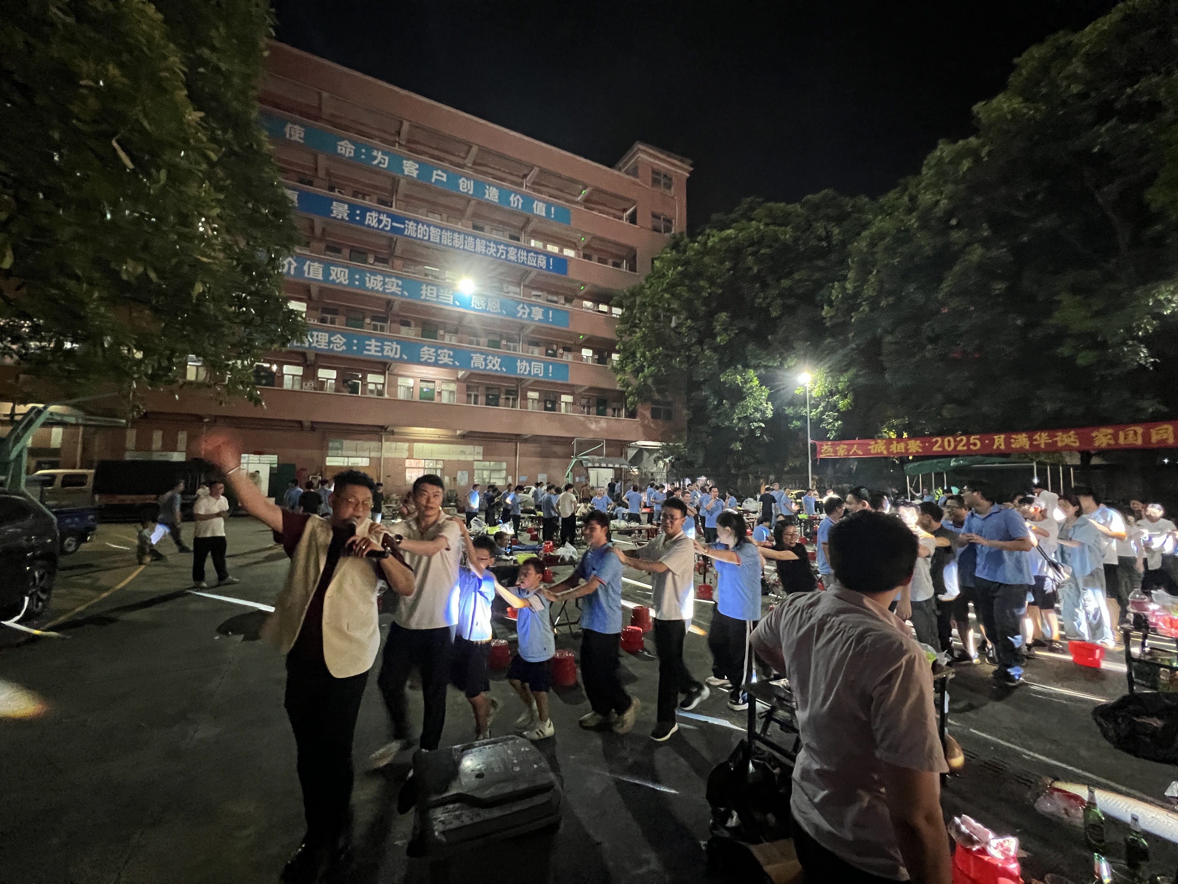 夜色漸濃,情誼愈深。隨著主持人一聲“開小火車啦!”,益誠家人們在笑聲和歡呼聲中迅速組成一條“長龍”,大家搭著肩,蜿蜒穿梭活動現(xiàn)場,載著喜悅奔向月光。