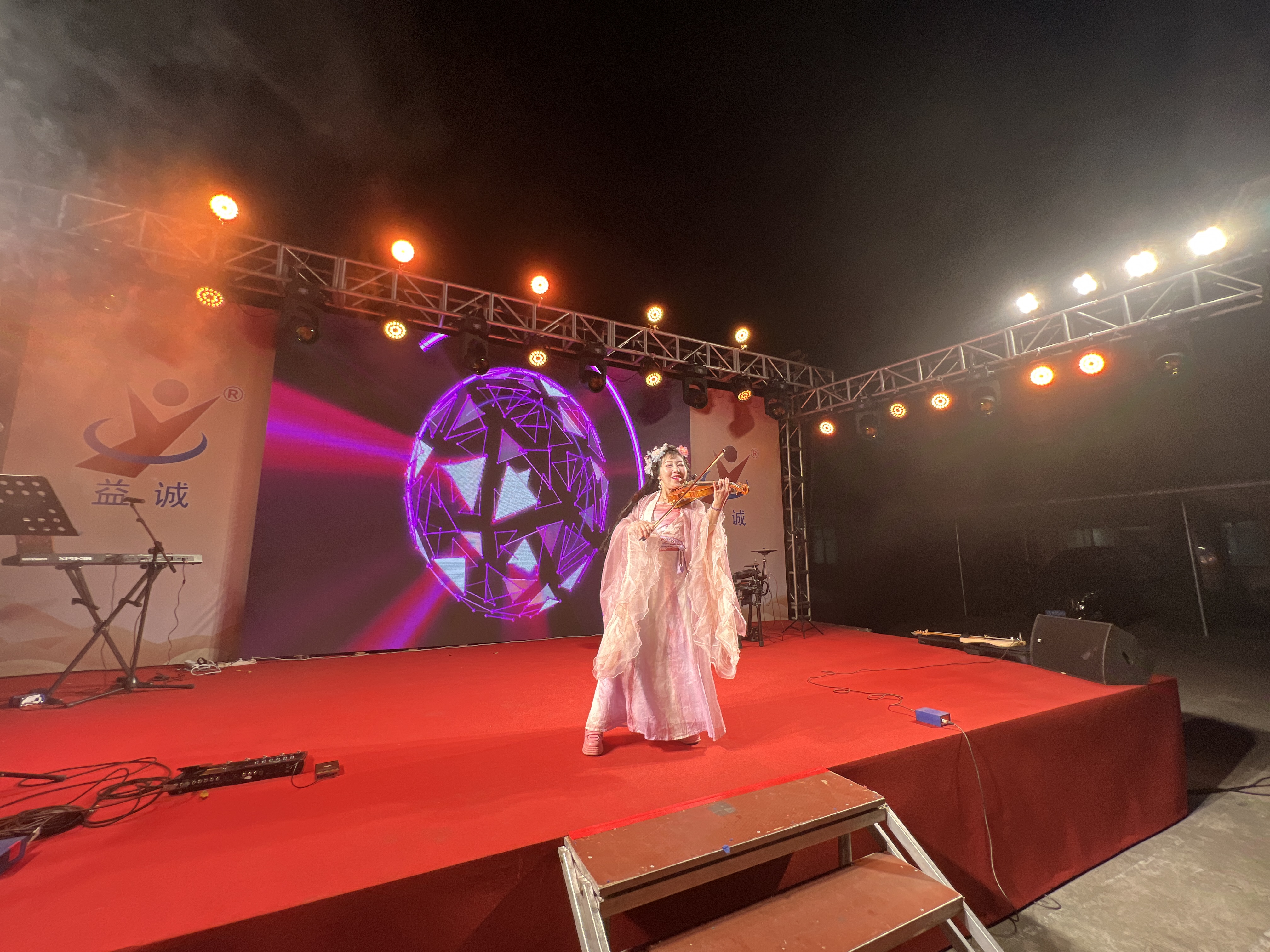 晚會由樂隊演奏激情開場,吉他、貝斯與鼓點交織,瞬間引燃全場;舞者隨音樂翩躚,動作柔美如風(fēng),光影間盡顯優(yōu)雅姿態(tài);歌手深情演繹經(jīng)典情歌;小提琴旋律悠揚動人;二人轉(zhuǎn)表演幽默詼諧,互動趣味十足,笑聲與掌聲迭起,將晚會一次次推向高潮。
